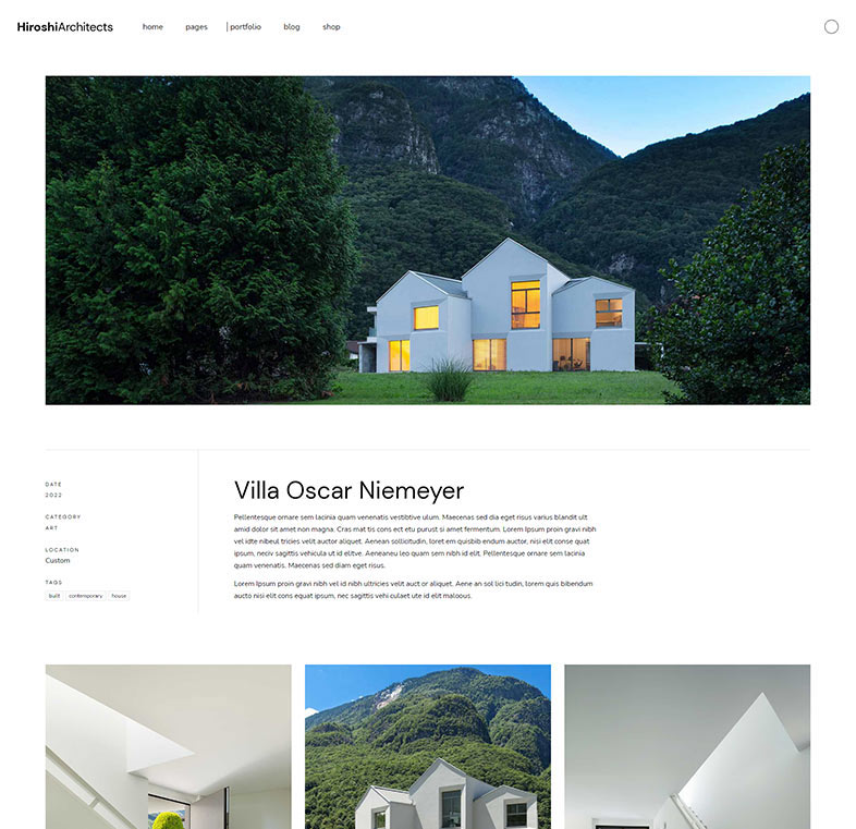 A vast selection of beautifully designed layouts for presenting all your architecture & interior design projects, twelve full-blown website examples and much more – meet Hiroshi.